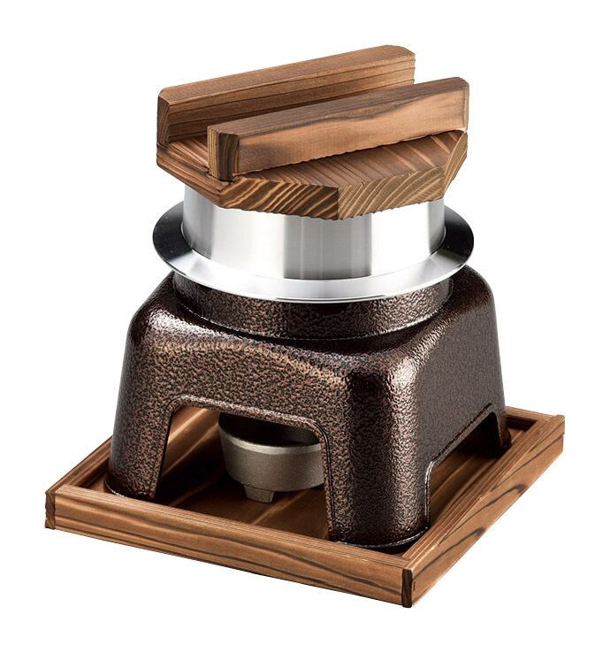 Set Contents: Wooden lid, winged pot (inner pot), stove, fire tray, base plate