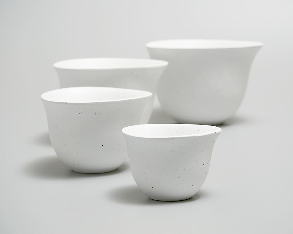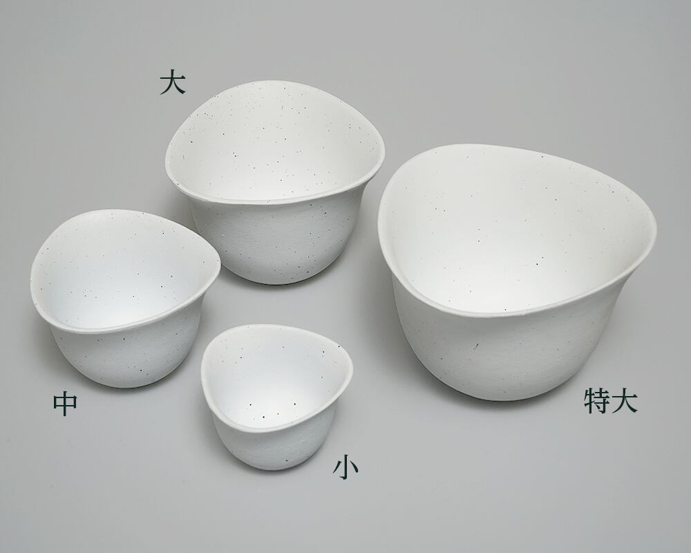 おむすびをかたどった、優しい三角形が特徴のむすび皿。陶器風に見えますが、実はアルミ製。「樹脂製の食器じゃ食が進まないよ」という高齢者の切実な思いがきっかけとなり生まれたものです。アルミの手触りを陶器のザラリとしたものに近づけるため、不良率が上がってしまうことも厭わず砂型に用いる砂の粗さを通常より細かいものにし、鋳造しております。そこに釉薬を塗ることで、この陶器と見紛う質感を実現いたしました。「割れない」という特性は、手を滑らせやすい高齢者だけでなく、子どもにも最適なもの。子どもたちもこの食器を使えば、器の美しさにもこだわる和食文化に幼い頃から容易に、そして安全に触れることができ、食育につながります。