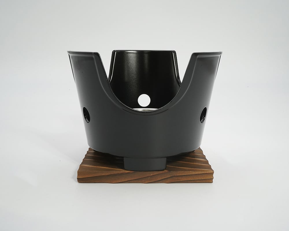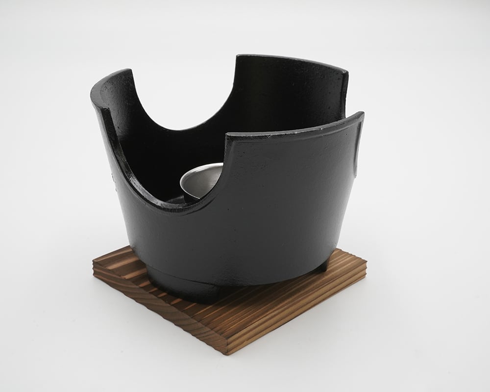 This round stove is used to heat solid fuel for single-serving dishes like “hoba-yaki” (grilled food on magnolia leaves) or “sukiyaki”.