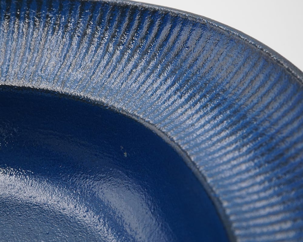淡い白と青が、いつもの料理を上品に見せてくれます。主菜にも副菜にも合わせられるように、直径17㎝の大きさに仕上げております。少しいびつな形が、なんとも言えない愛らしさを感じさせます。すべて手造りなので、色の濃淡や模様が1つ1つ異なります。そのため、世界でただ一つだけの食器があなたの手元に届きます。